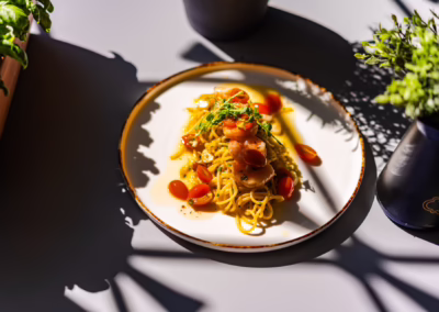 Každý pokrm, který dorazí na Váš stůl, připravíme z kvalitních a čerstvých surovin a podle ověřených receptů na saláty, domácí těstoviny, rissota, hamburgery i poctivé steaky z prémiového masa. Pro přípravu jídel používáme jen pravé italské a čerstvé suroviny prvotřídní kvality.