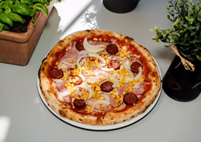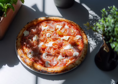 V naší restauraci Nautico si můžete pochutnat na pizze z pece na dřevo připravované před zraky hostů.